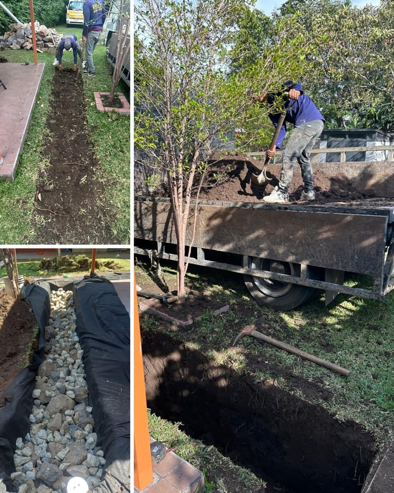 Sistema diseñado con acceso para mantenimiento preventivo. Trabajo realizado con mini excavadora para mayor precisión y rapidez en la instalación.
